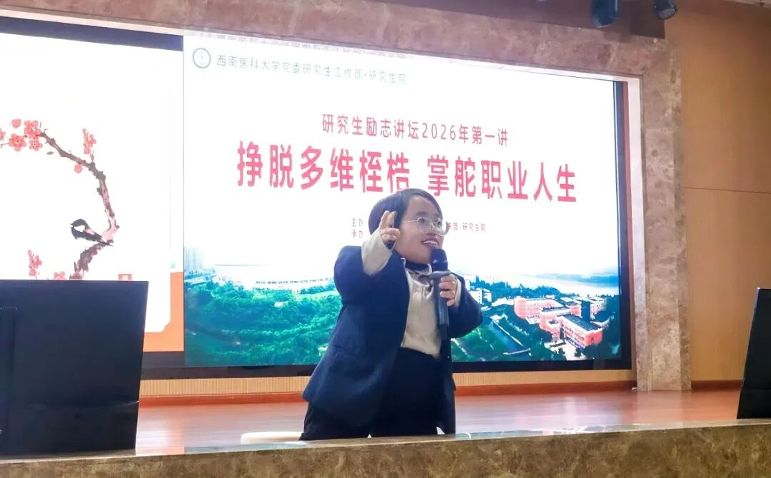 春和景明,暖意渐浓。3月27日下午,西南医科大学城北校区第一学术报告厅内掌声雷动,一位特殊的“小老师”如约而至,用真诚的分享、不屈的人生,为现场500余名研究生带来了一场直击心灵的励志盛宴。